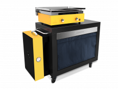 Auf der großen Oberfläche des Verycook Grillwagens XL haben Sie nicht nur ausreichend Platz für Ihre Plancha mit 2 oder 3 Brennern, sondern auch eine zusätzliche Arbeitsfläche. An der Vorderseite des Grillwagens befindet sich eine praktische Edelstahlschublade, in der Sie beispielsweise Geschirr aufbewahren können. Die Schublade kann aber auch in eine extra Edelstahl-Arbeitsfläche verwandelt werden, um Lebensmittel vor dem Kochen zuzubereiten oder Getränke abzustellen. Der Verycook Grillwagen XL hat vier Räder mit Bremssystem und ist somit leicht zu bewegen. Im unteren Teil des Grillwagens können Sie eine Gasflasche aufbewahren, diese wird dann durch eine Vorderwand aus Stoff verdeckt. Der Stoff kann gewendet werden und ist in 3 verschiedenen Farben und Mustern erhältlich!