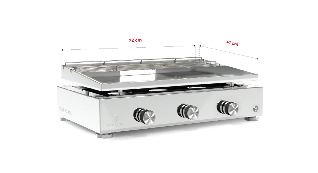 Plancha-3-Brenner aus massiver Edelstahlplatte: 7 mm dick (100% massive Edelstahlplatte)
